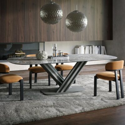 Moderní rozkládací jídelní stůl Missouri zaujme svou luxusní keramickou deskou a designovou podnoží.