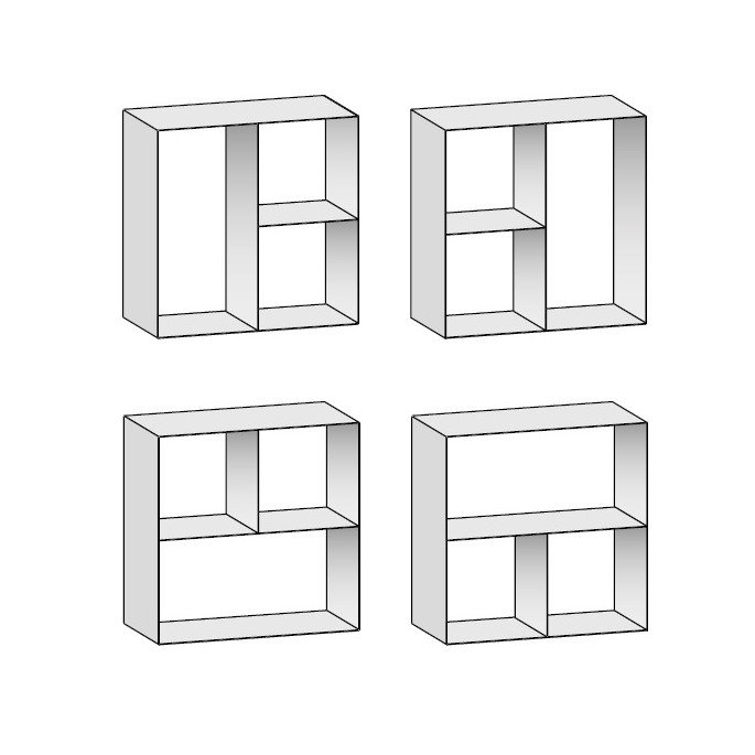 Nástěnná čtvercová police z lakovaného kovu je dostupná se zadním panelem ze zrcadlového skla, dřeva nebo keramiky. Dostupné čtyři pozice zavěšení.