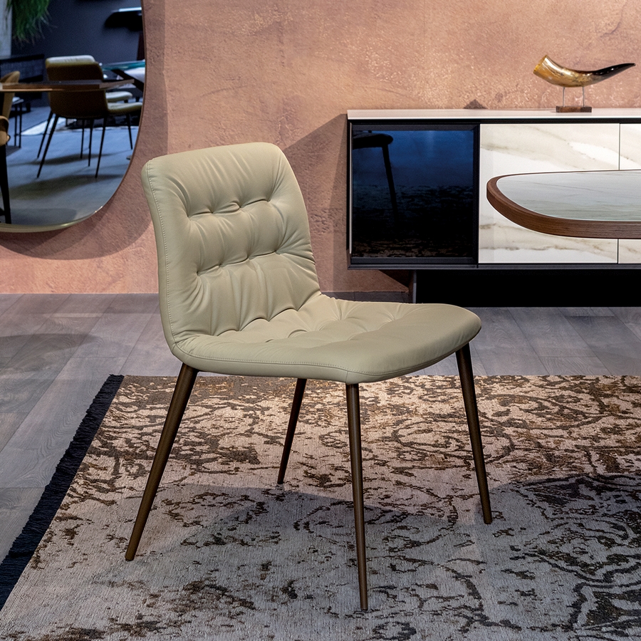 Capitonné je absolutně jedním z nejcennějších a nejúžasnějších prvků ve světě nábytku. Pohodlné sedadlo elegantní židle Daddy disponuje tímto capitonné efektem, což z něj činí jedinečný kousek. Židle je čalouněna materiálem v barvě dle Vašeho výběru.