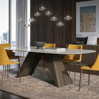 Jídelní stůl Simposio: nadčasová elegance, precizní geometrie a luxusní povrchové materiály pro moderní interiér.