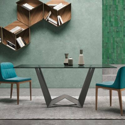 Majestátní jídelní stůl Tokyo se zajímavou podnoží vytvoří v interiéru jasnou dominantu.