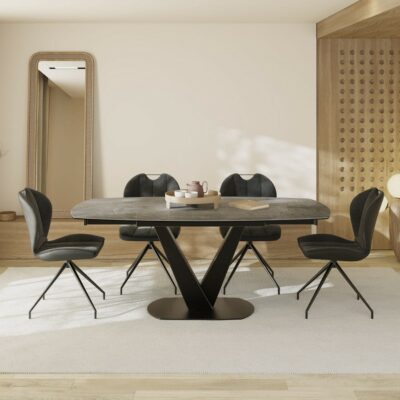 Rozkládací jídelní stůl Bellagio s keramickou deskou je stylovým doplňkem moderní jídelny.