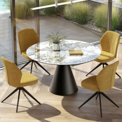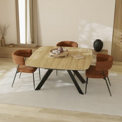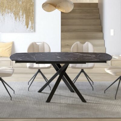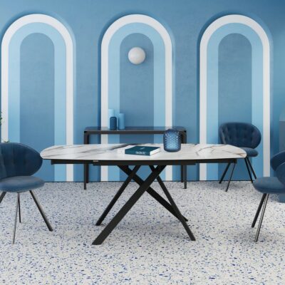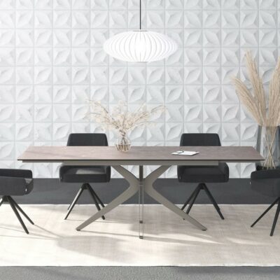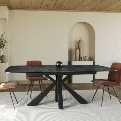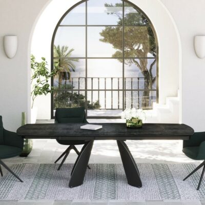 Rozkládací jídelní stůl Kheops s odolnou keramickou deskou spojuje elegantní design a praktickou funkčnost.