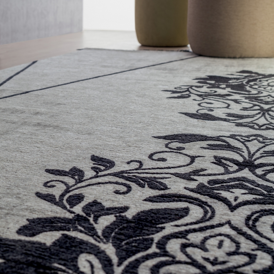Hebký koberec Palmanova s luxusním vzorem damašku uprostřed vytvoří v jakékoliv místnosti nádherný doplněk. Dostupný ve dvou velikostech a ve dvou barvách.