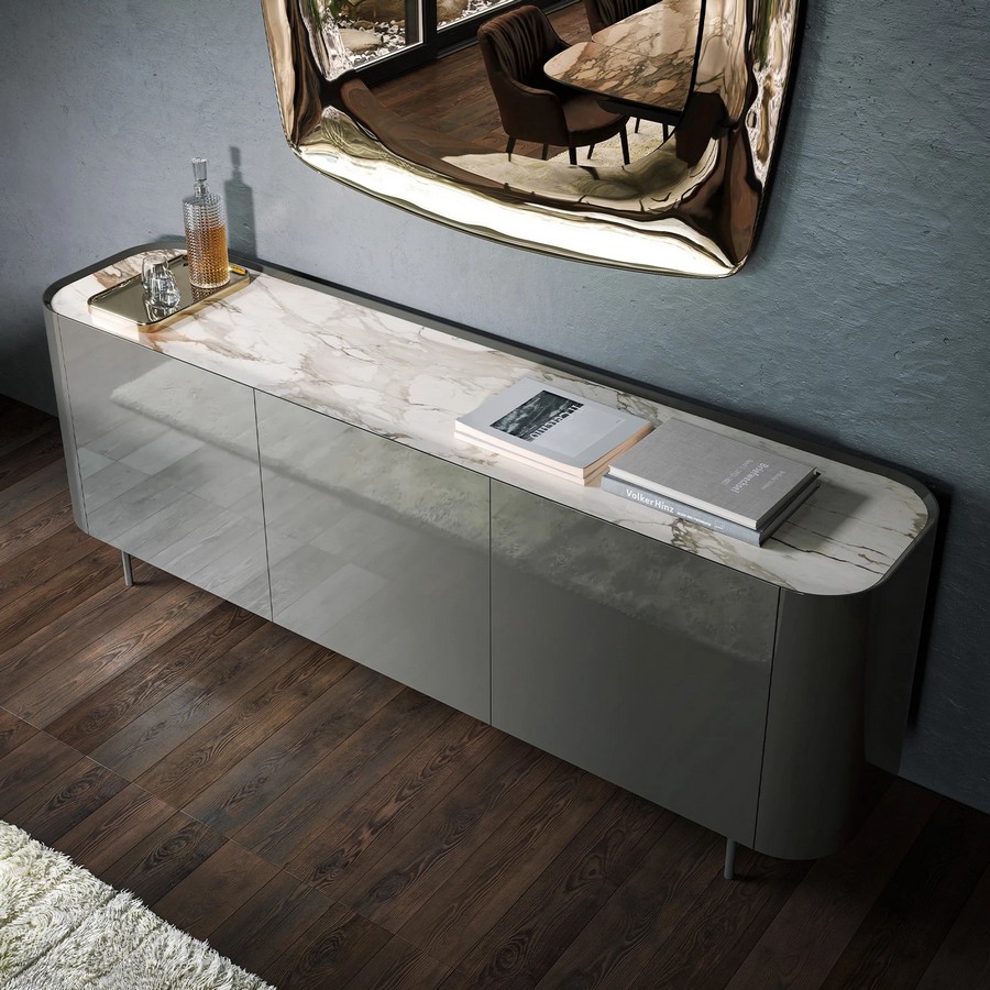 - vrchní deska: lak / lakované sklo / keramika / zrcadlové bronzové sklo