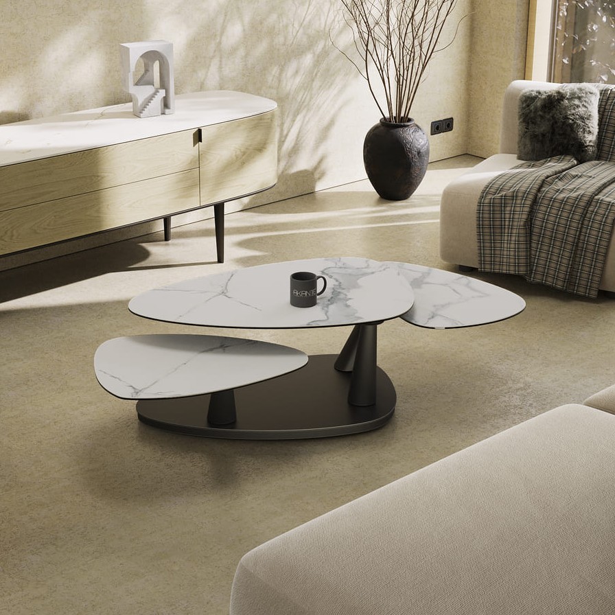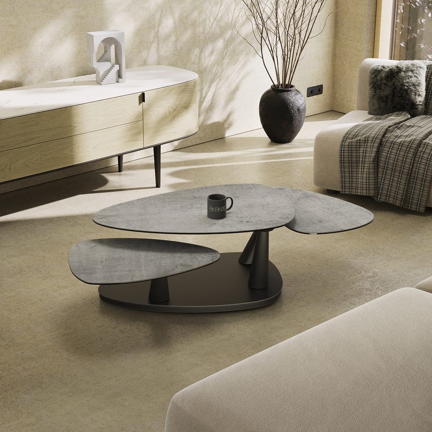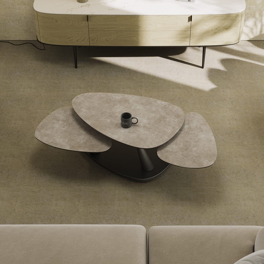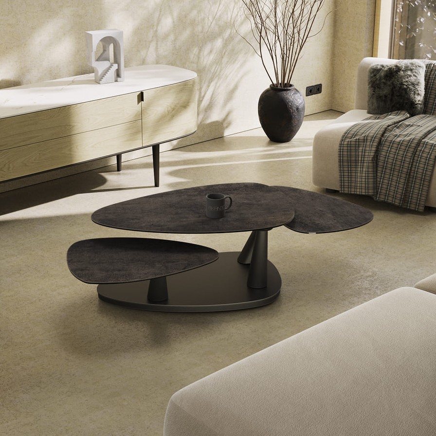 Konferenční stůl Camelia je multifunkčním a elegantním řešením pro moderní interiéry. Velká stolová deska z keramiky zajišťuje vysokou odolnost, zatímco černě lakovaná podnož dodává stolu nadčasový charakter. Díky synchronizovanému mechanismu lze stůl snadno přizpůsobit různým situacím.