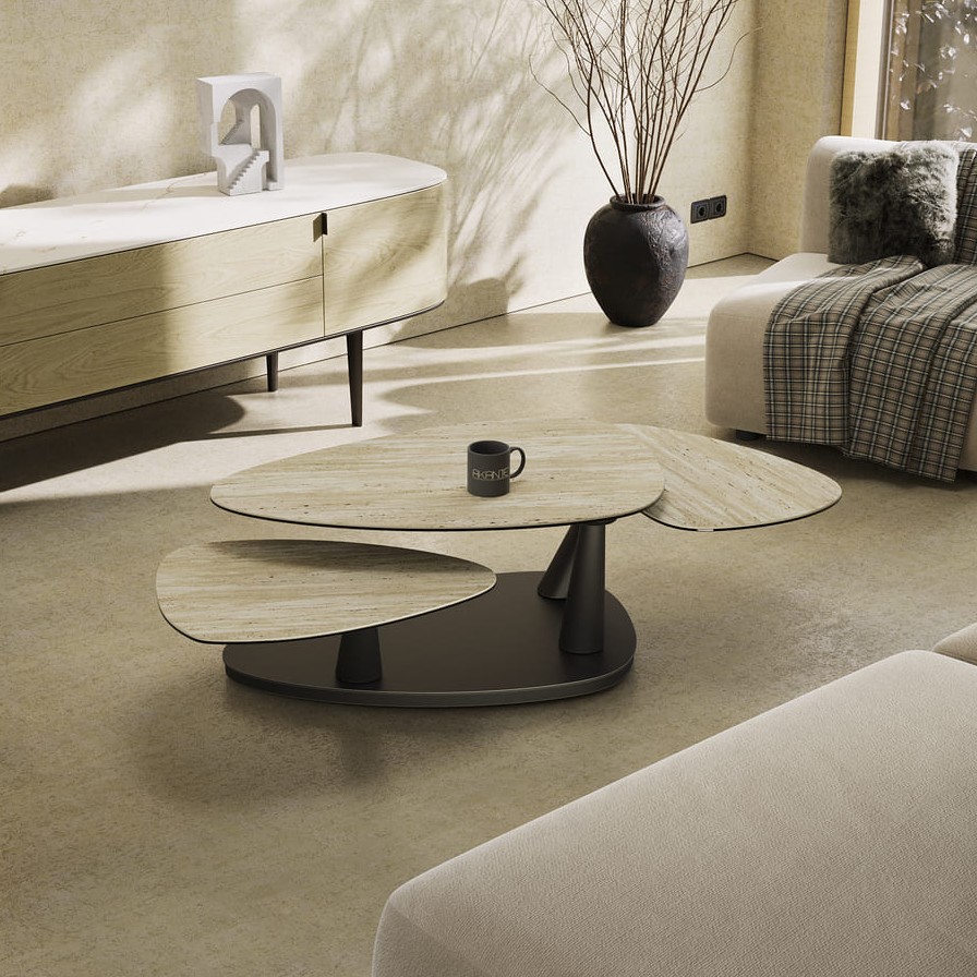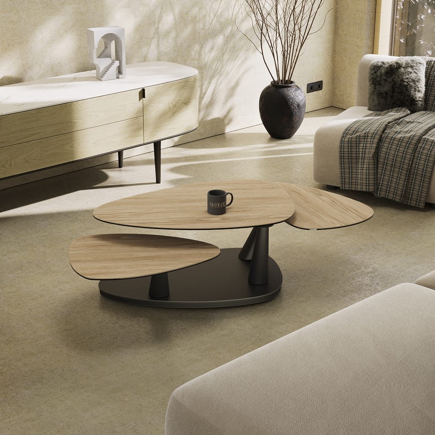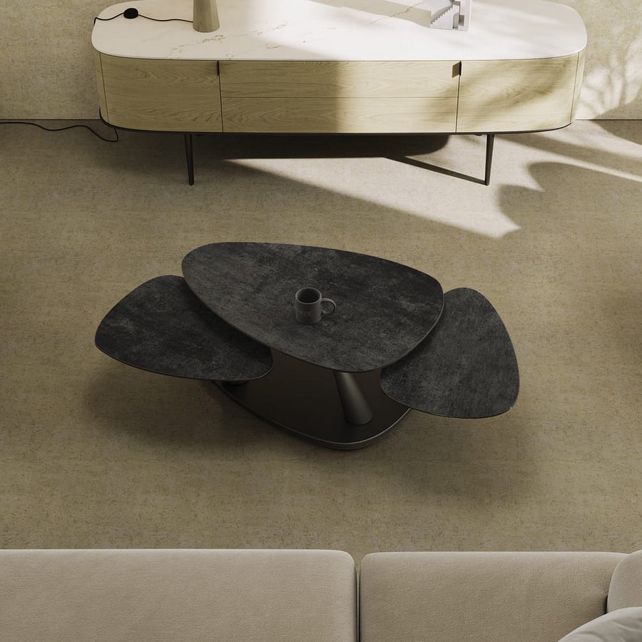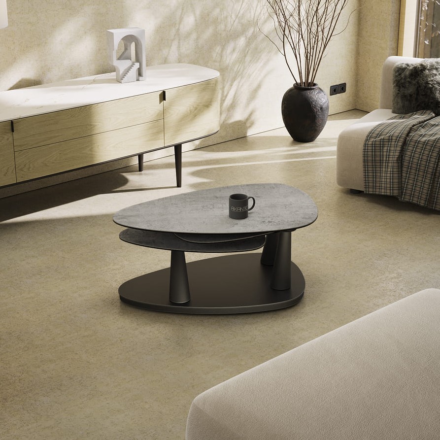 Konferenční stůl Camelia je multifunkčním a elegantním řešením pro moderní interiéry. Velká stolová deska z keramiky zajišťuje vysokou odolnost, zatímco černě lakovaná podnož dodává stolu nadčasový charakter. Díky synchronizovanému mechanismu lze stůl snadno přizpůsobit různým situacím.