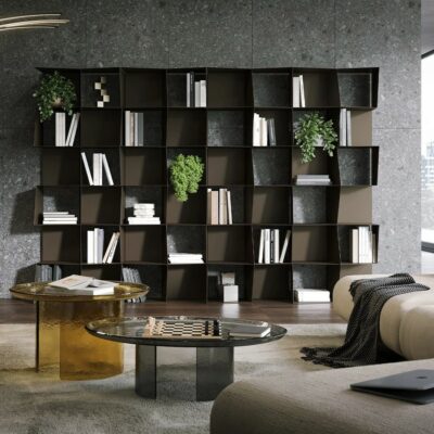 Knihovna Checker s jednoduchým moderním vzhledem a jemným dynamickým detailem je vhodná do mnoha interiérů.
