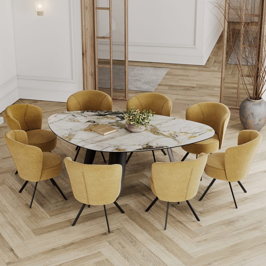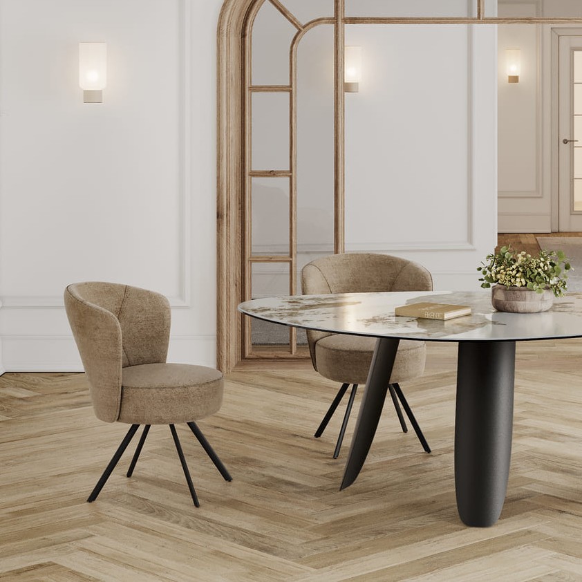 Designová židle Prague kombinuje elegantní vzhled s vysokou úrovní pohodlí. Díky otočné základně o 180° je praktickou volbou do jídelního i kosmetického koutku. Čalounění v textilu mnoha barev.