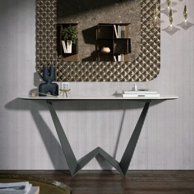 Elegantní styl kovové konzole Albatros podtrhuje její tvar, který připomíná dvě zakřivená kovová křídla.