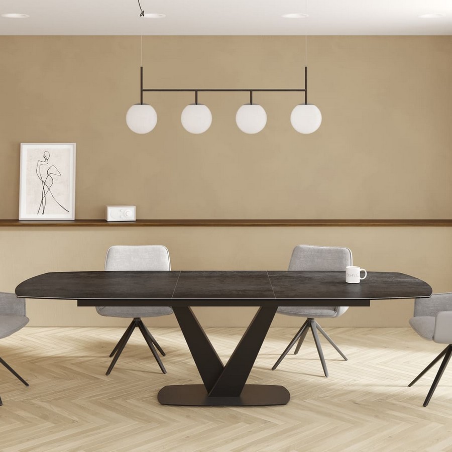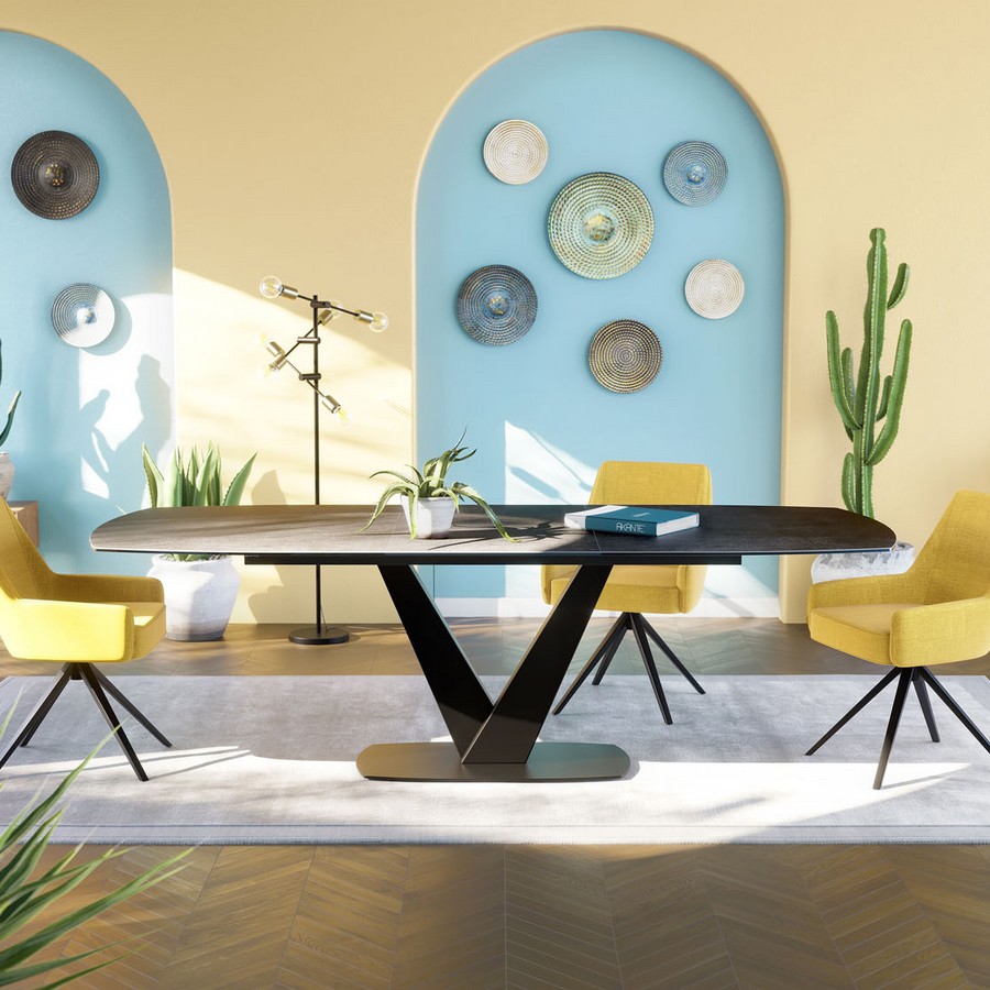Jídelní stůl Columbia spojuje elegantní design a praktickou funkčnost. Zaujme svými čistými liniemi a kvalitním zpracováním. Keramická deska v různých odstínech nabízí vysokou odolnost i snadnou údržbu. Možnost rozložení nabízí komfort pro každodenní stolování i větší setkání.