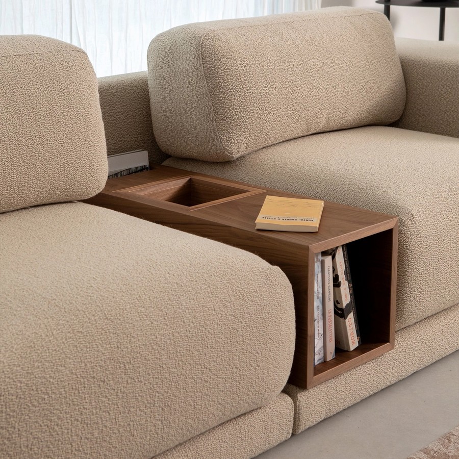 Modulární sedací souprava London disponuje širokými sedáky a masivními područkami. Několik rozměrů je zdobeno dřevěným stolkem, který je ideální pro odkládání knih, časopisů či jiných předmětů. Design této soupravy spojuje současnou estetiku, funkčnost a maximální pohodlí.