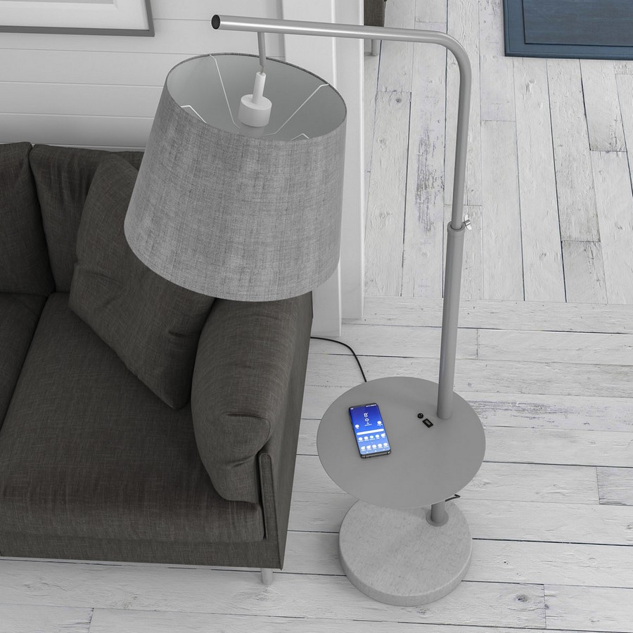 Stojací lampa Solaris USB spojuje moderní design s promyšlenou funkčností. Stabilní mramorová základna v šedém odstínu zajišťuje pevnost, zatímco otočná odkládací plocha slouží jako praktický přídavný stůl. Výšku stolu i stínidla lze snadno nastavit. Solaris představuje stylové a funkční řešení pro moderní interiéry.
